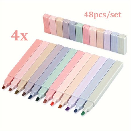 48pcs Pens Morandi Color Fluorescent Pen Soft Head Marker Pen Eye Protection Color Marker Pen Student Fluorescent Pen