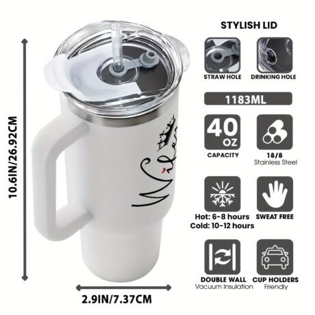 40oz Stainless Steel Insulated Tumbler with Handle & Straw – Cute Cartoon Design, Perfect for Hot and Cold Drinks, Ideal Gift for Family and Friends