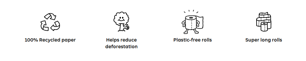 Every day, over 1 million trees are cut down to make traditional toilet paper. Such a waste! Cutting down trees just for TP is a total no-no for us. That’s why these rolls are made using 100% recycled materials. Helping to reduce deforestation by wiping your bum is what we’d call a yes-yes.