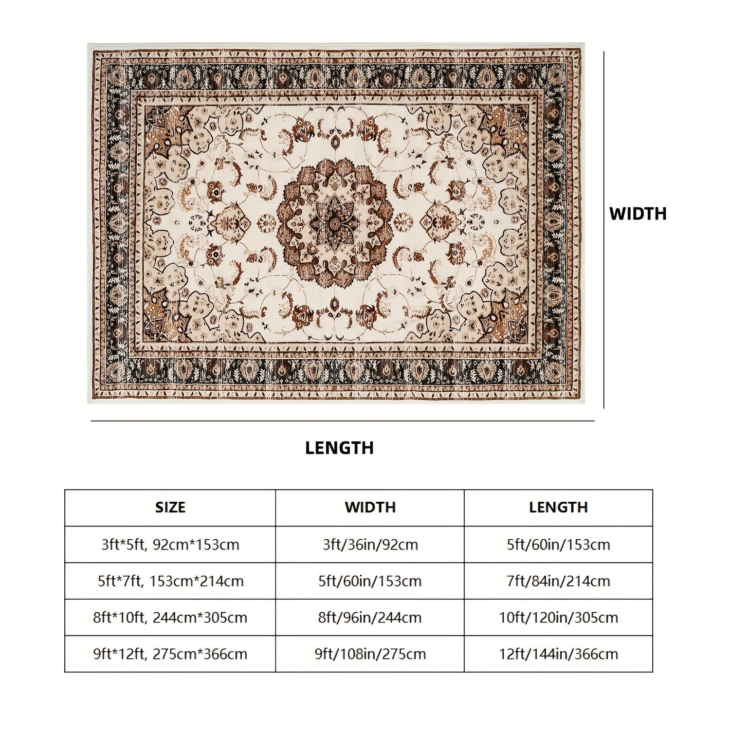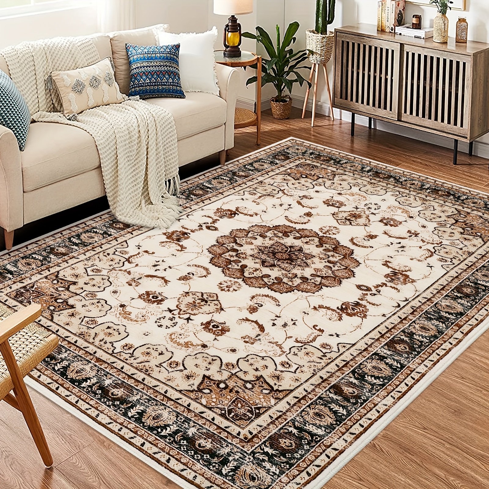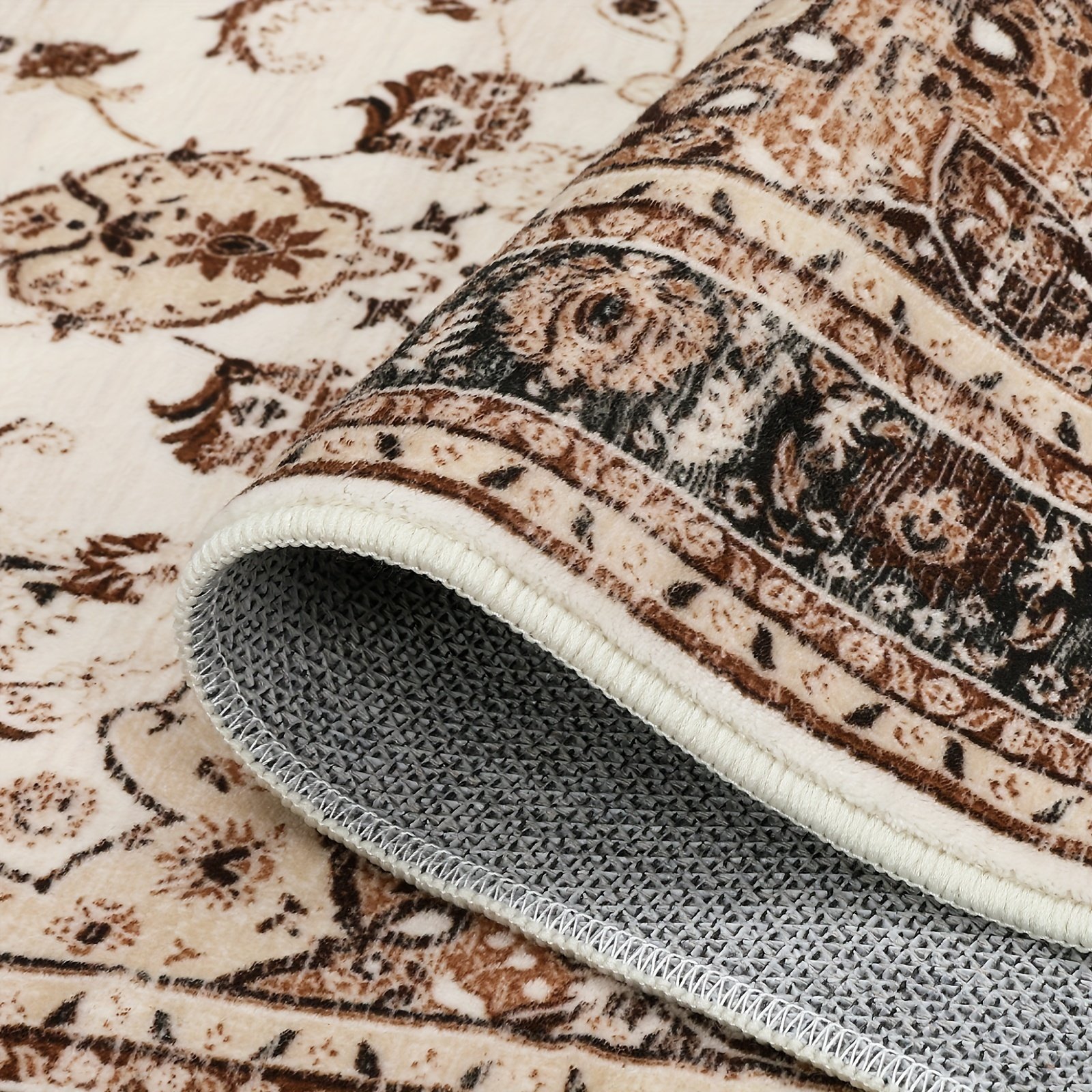 Washable Vintage Area Rug, Traditional Oriental Medallion Floral Design, Stain Resistant Indoor Print Carpet For Entryway Bedroom Living Room Office Kitchen, Beige Brown