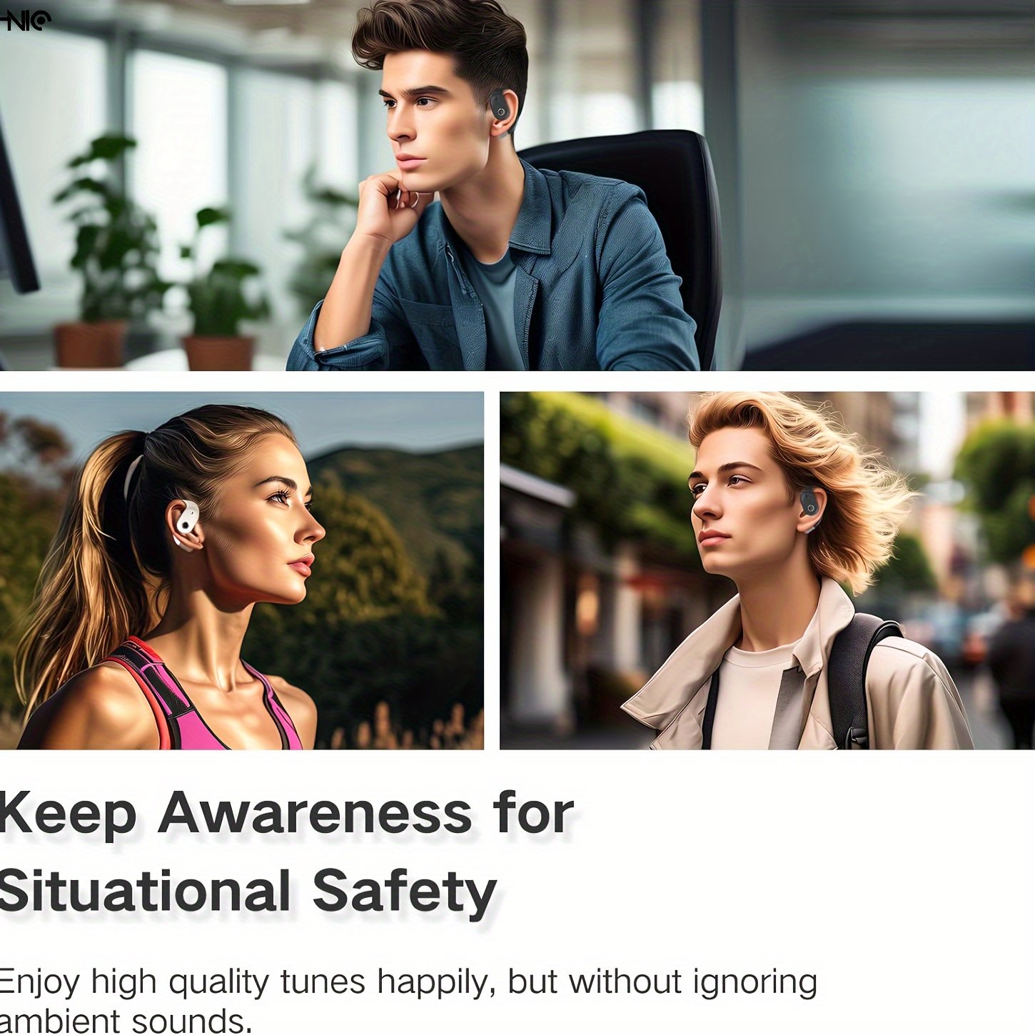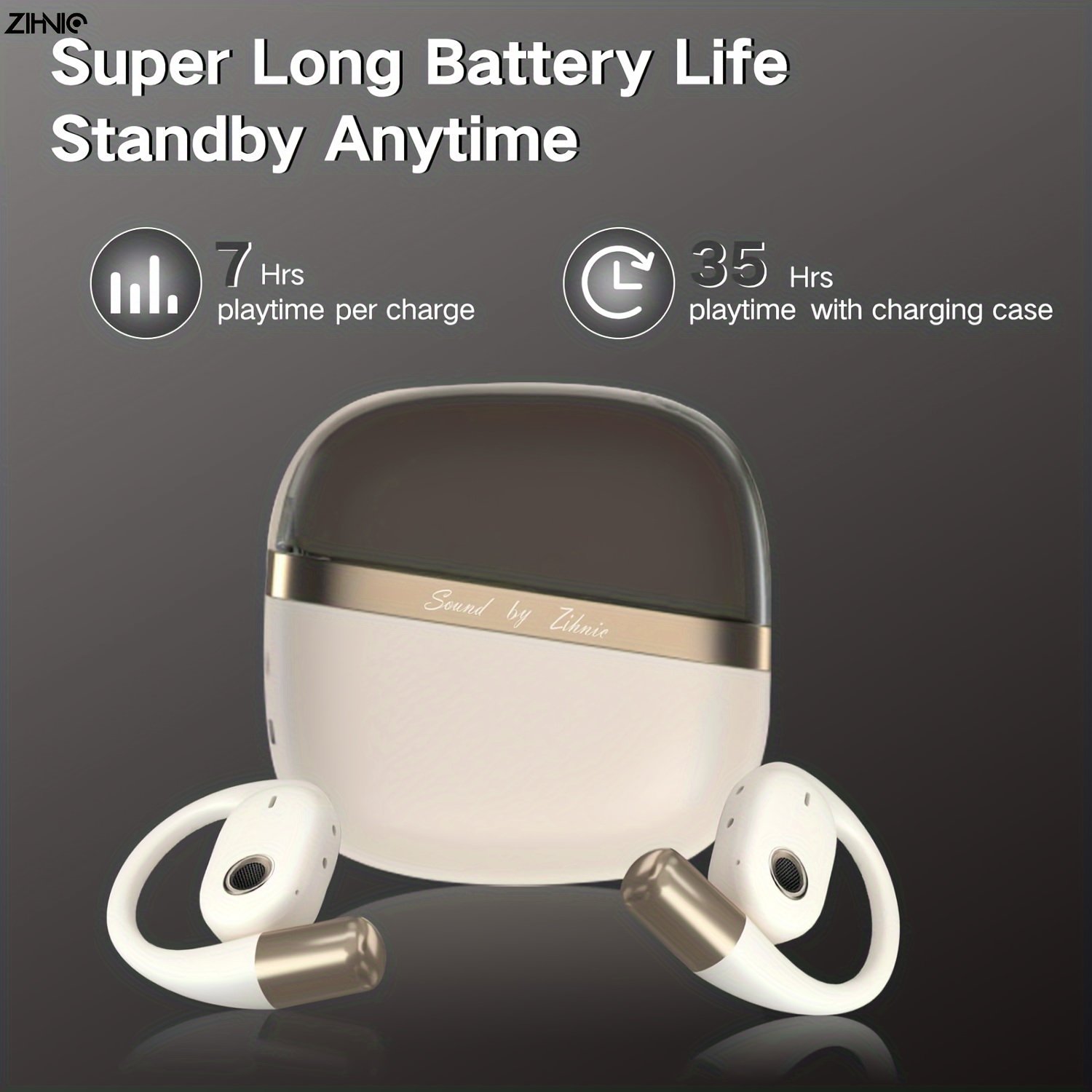 ZIHNIC True Wireless Open Ear Headphones With Mic, BT Earbuds With Earhooks, Fast Charging, 35Hrs Playtime, Compatible With Anyphone-