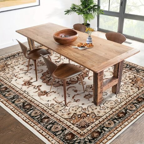 Washable Vintage Area Rug, Traditional Oriental Medallion Floral Design, Stain Resistant Indoor Print Carpet For Entryway Bedroom Living Room Office Kitchen, Beige Brown